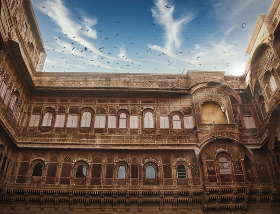 The fort was named Mehrangarh, meaning 'fort of the sun'a reference to the clan's mythical descent from the sun god Surya. Over 500 yards long, its wall rises in places to a height of 120 feet and is 70 feet.